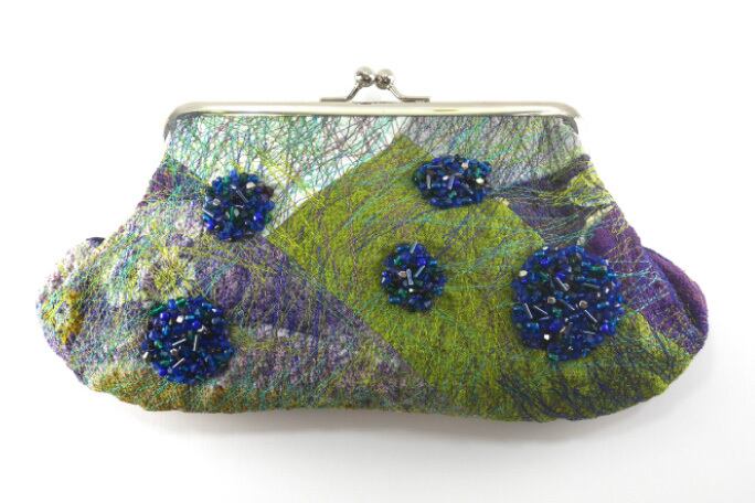若草色/ブルー/パープルでまとめた上に青色系ビーズでドット を描きました。